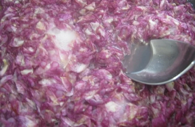 - Поместите лепестки в большую чашку, залейте холодной водой и тщательно промойте, перебирая руками.